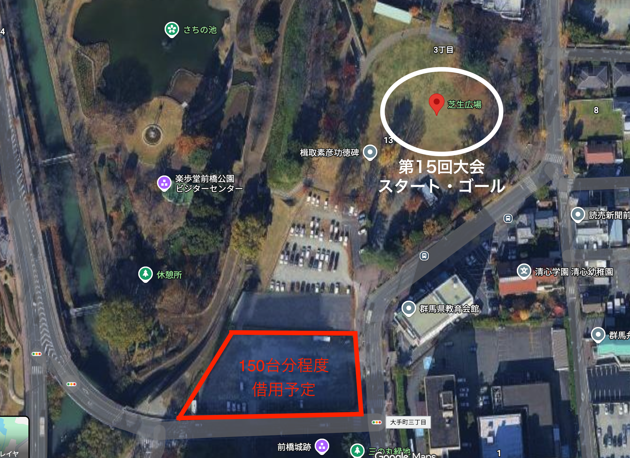 今後の大会開催や大会運営にも非常に大きく関わるため、前橋公園の駐車場やグリーンドーム・市役所、周辺店舗等の施設駐車場の利用は固くお断りさせていただきます。